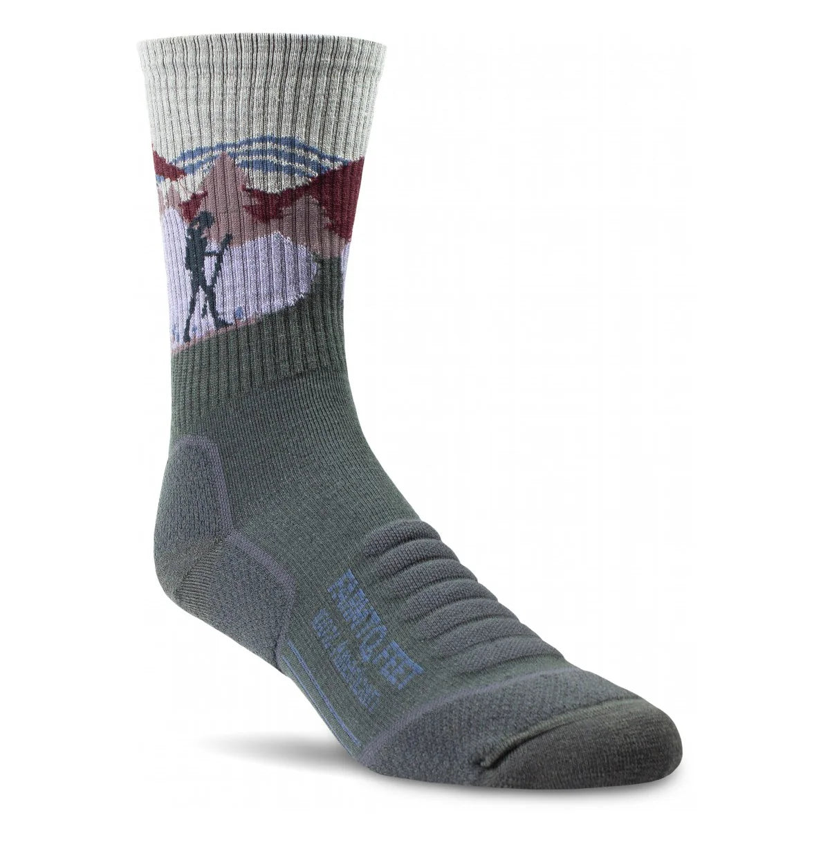 Partnering with Jennifer Pharr Davis, who set a record for through-hiking the Appalachian Trail in 46 days, we designed the Blue Ridge, our newest pair to create awareness for these stunning mountains near her hometown of Asheville, NC. Based on the Damascus, with our signature targeted cushioning zones on the heel, ankle, and top of the foot, the Blue Ridge is ideal for long days of carrying a pack through even the most difficult terrain on the trail. The Blue Ridge sock is designed with the image of a single, blue hiker on the leg to represent the solo hiker on the challenging yet beautiful adventure across the Blue Ridge Mountains.