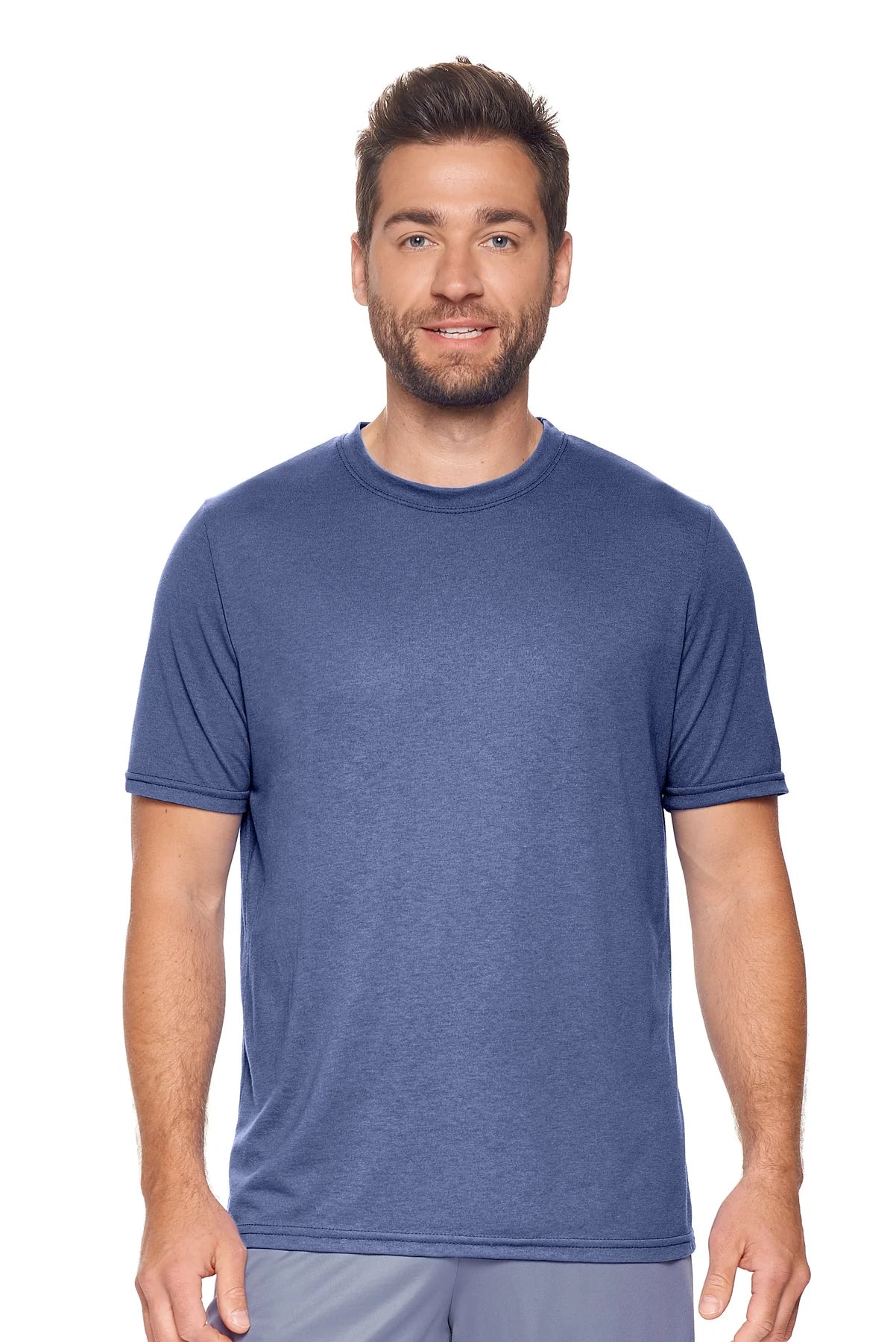 A heathered cotton look provides a unique spin on this lightweight basic. Featuring moisture-wicking technology and a clean cut with smooth seams for an effortless essential with functional performance features. Made in the USA.