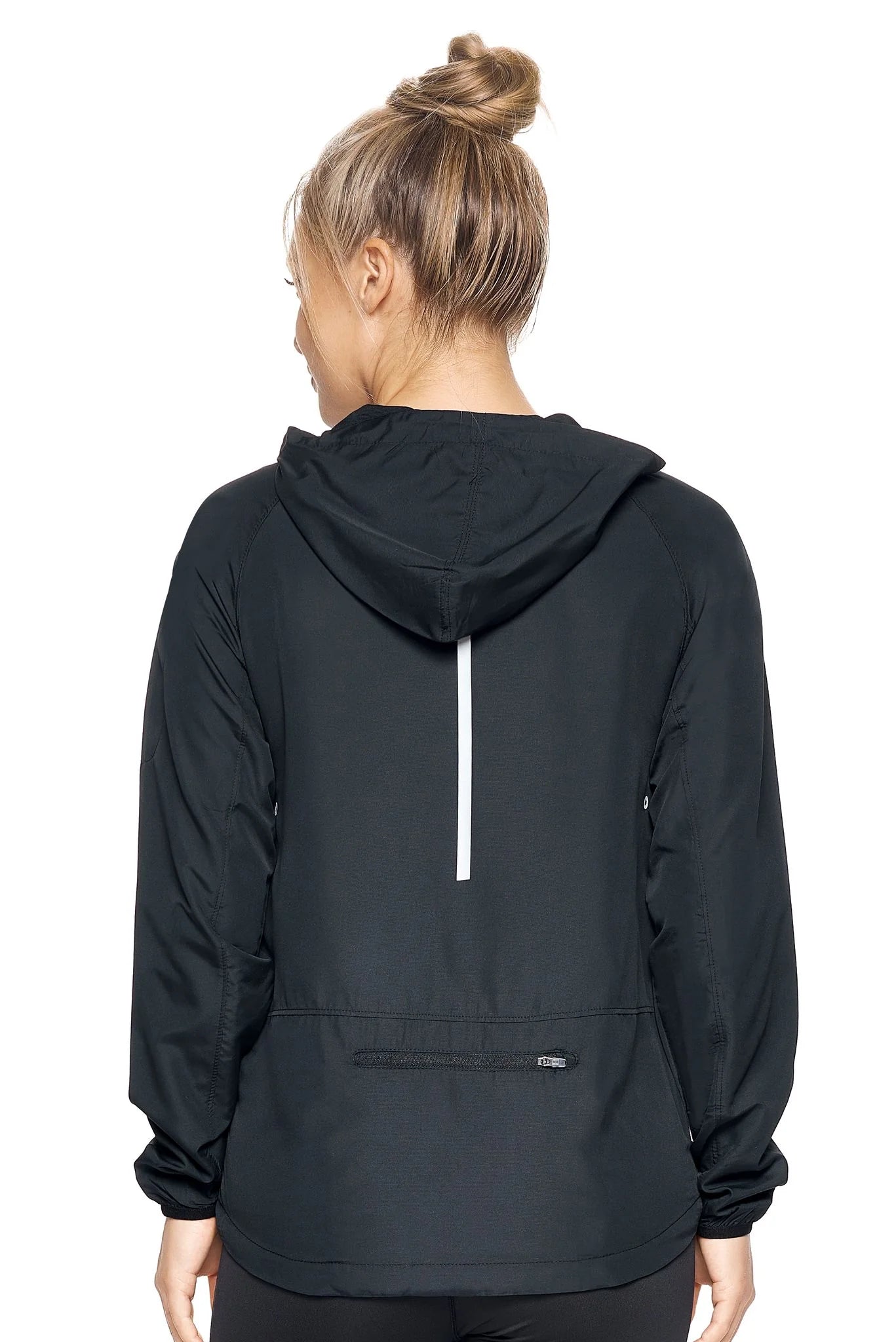 As a product expert, I highly recommend the Women's Black Water Resistant Jacket. This durable and comfortable jacket is perfect for any outdoor activity, with built-in odor control and sweat-wicking technology. Its relaxed fit, adjustable hood, and multiple zipper pockets make it both practical and stylish. Stay visible in low light with its reflective features. Made of 100% microfiber woven polyester.