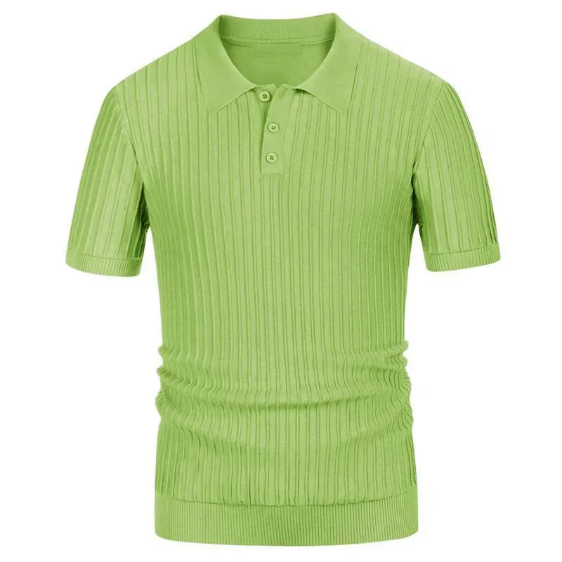 Men's Crochet Polo Shirt with Stripes