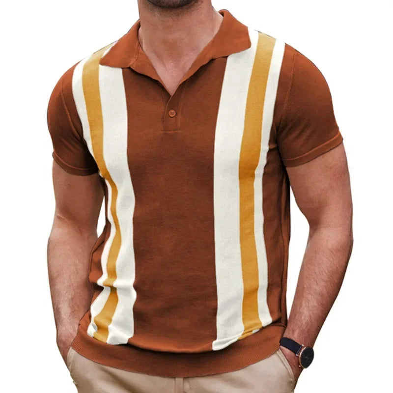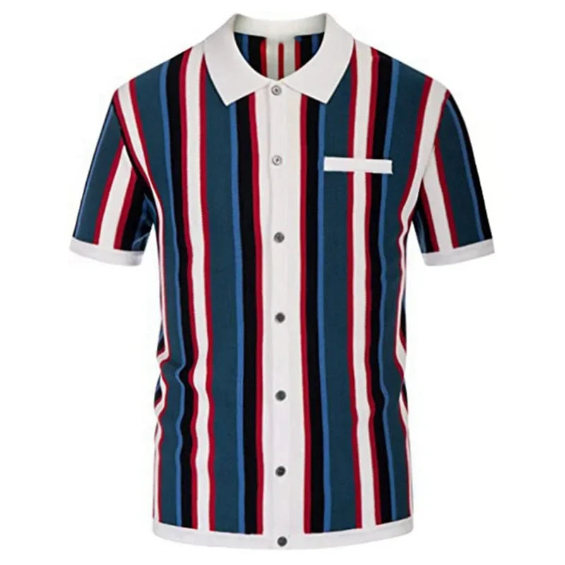 This Men's Crochet Polo Shirt with Stripes would look fantastic with jeans, shorts, and boat shoes. The crochet style is coming up to be a trend, make sure you clock in with this summer polo shirt.