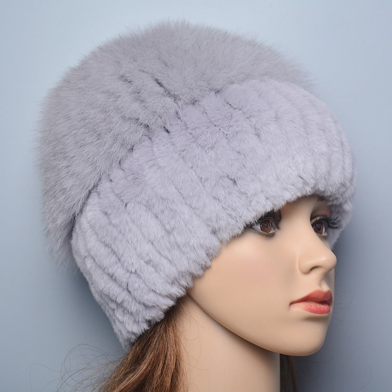 Women's Thick Rabbit Fur Winter Hat & Snow Cap