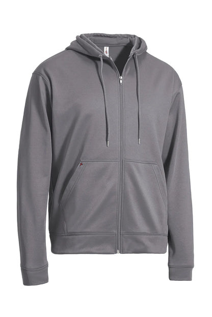 Experience the perfect blend of function and comfort with our Men's Fleece Zip-Up Athletic Hoodie. Made in the USA, this hoodie features breathable, sweat-wicking fabric to keep you dry and fresh during workouts or casual wear. With a soft fleece inner lining and anti-static, odor, and UV protection, you can take on anything in style.