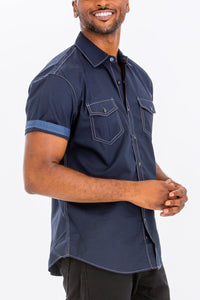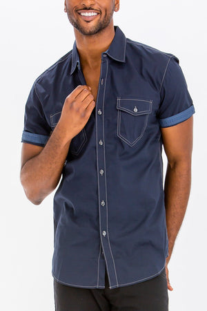 Men's Navy Short Sleeve Button Down Dress Shirt