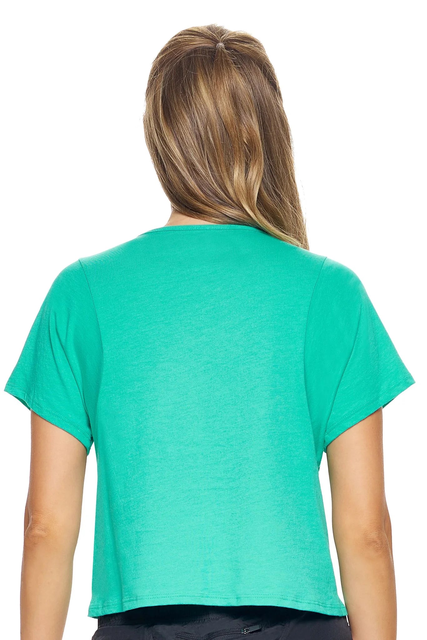 Discover the perfect blend of comfort and sustainability with our Women's USA Made Eco Friendly Cropped T-Shirt. Boxy crop and relaxed fit, with a luxuriously soft feel thanks to LENZING® Modal and combed ring-spun cotton. Untie for hip-length fit and easy tear-away tag. Made responsibly in the USA.